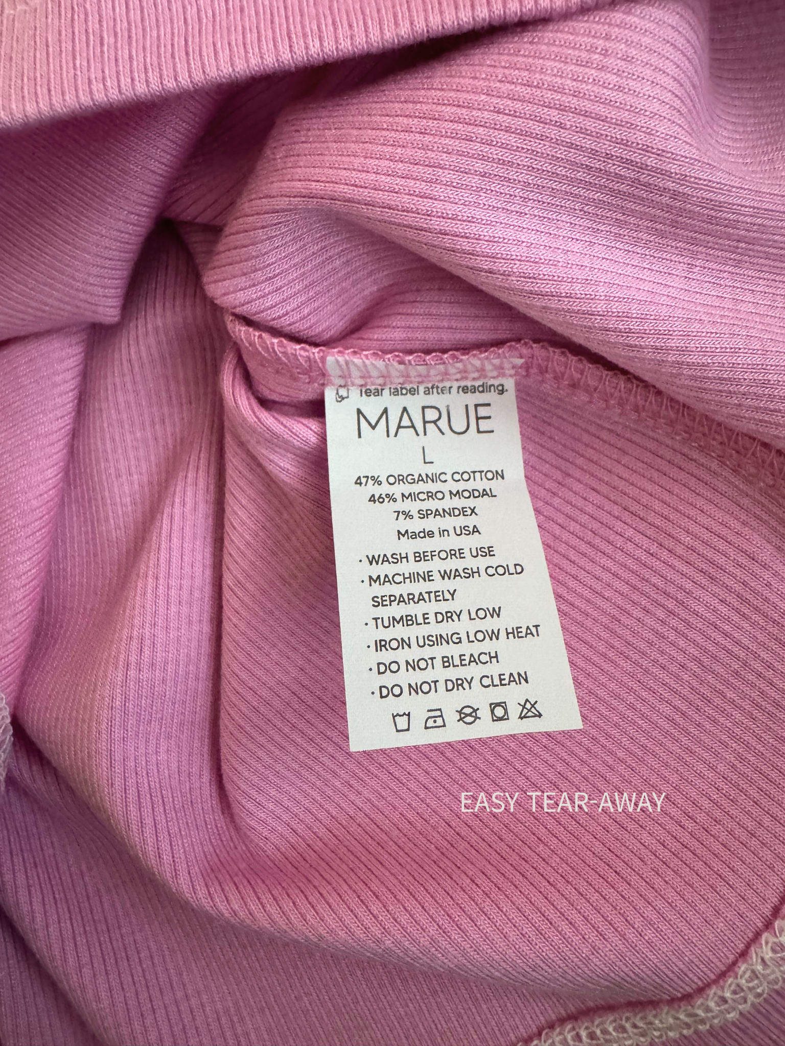 - Easy tear-away care label